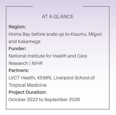 The intervention begins in Homa Bay County, with scale-up planned in Kisumu, Migori, and Kakamega counties. Research includes a realist evaluation, a cluster-randomised controlled trial, and health economic analysis.